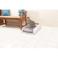 Strike scooping the litter box off your to-do list. With the PetSafe® ScoopFree Self-Cleaning Litter Box, there’s no scooping, cleaning or refilling your cat’s litter box for weeks. It uses crystal litter which provides five times better odour control than traditional clumping litter. Crystal litter absorbs urine and dehydrates solid waste. This low-tracking litter also helps to keep your floors clean because it is 99% dust-free and doesn’t stick to your cat’s paws. Safety sensors ensure that the scooping cycle only occurs when your cat is out of the box. It uses disposable trays that have a plastic lining to help protect against leaking, and each tray comes with a lid for quick and easy disposal. Just remove the tray and throw it away. Your pet deserves the best. Trust PetSafe® to help keep your pet healthy, safe and happy.